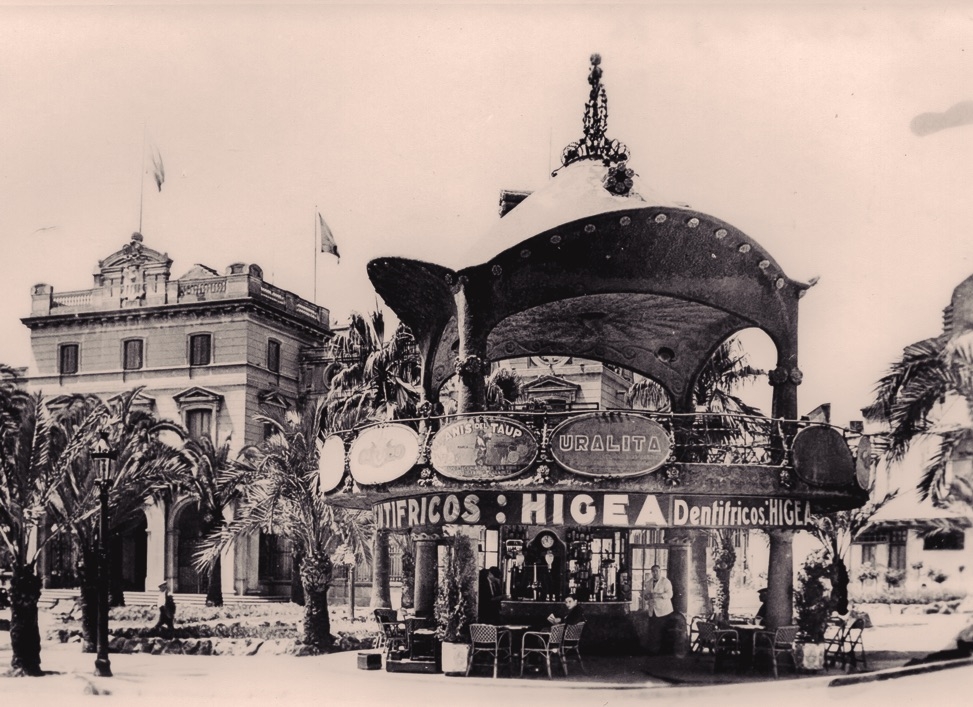 Tot va començar l’any 1910, quan l’Ajuntament va voler canviar d’emplaçament i renovar el quiosc de begudes que tenia a la mateixa plaça, regentat per Feliu Antúnez Gaspar en règim de concessió. Antúnez va guanyar el concurs públic municipal, presentant un projecte renovador amb plànols de l’arquitecte Josep Renom. Segons el contracte, l’Ajuntament s’obligava a no concedir cap més llicència per vendre begudes dins l’àmbit de la plaça i a no cobrar la contribució al guanyador. Per la seva banda, Antúnez es comprometia a construir el nou quiosc en quatre mesos, amb un pressupost de 7.931 pessetes, i a cedir-lo a l’Ajuntament al cap de 12 anys. Ara bé, un cop acabada l’obra, es va constatar que el cost total havia sigut de 15.011 pessetes, per la qual cosa el consistori en va concedir l’ús per 16 anys, en comptes dels 12 acordats primerament. Feliu Antúnez, doncs, va pagar la construcció de tot el templet, però només va poder fer ús del quiosc.